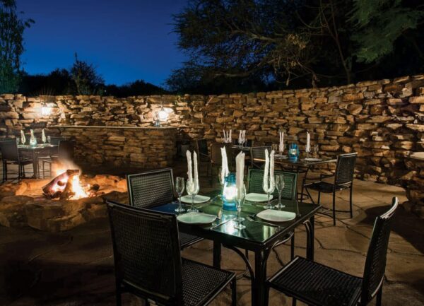 A distinctive outdoor space enclosed by natural stone walls, offering character and warmth for evening functions. Ideal for intimate gatherings or group events, it creates a relaxed setting that encourages connection, conversation, and a memorable sense of togetherness.