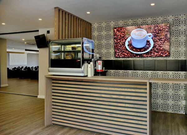 A bright and informal venue suited to intimate meetings, light refreshments, and relaxed catch-ups. It works well as a breakout area or a casual pre-event meeting point.
